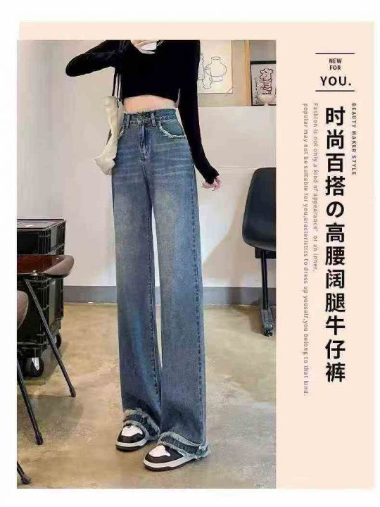 ☕️毛边直筒阔腿牛仔裤女秋冬季新款高腰毛边宽松阔腿...