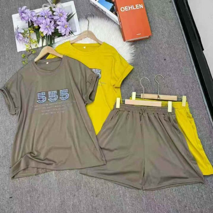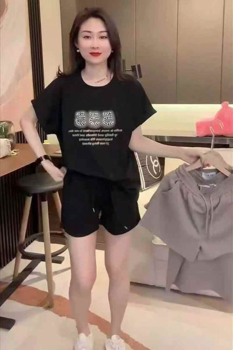 2025夏韩版洋气宽松时尚运动套装短袖T恤抽绳短裤,243件,1-4码 分货➕1(黑色套装为主,中间码多)独立包装 模特图及供参考(货号1129#63)