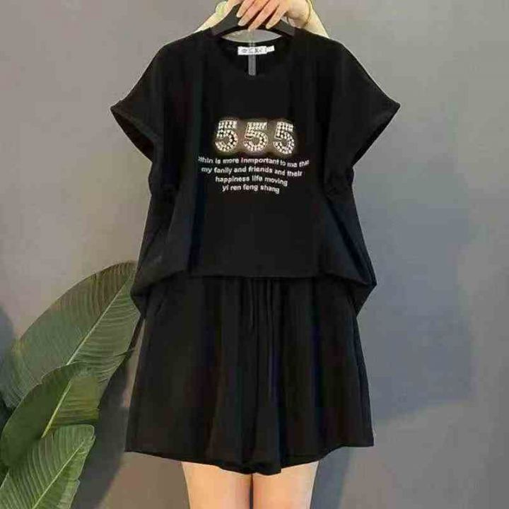 2025夏韩版洋气宽松时尚运动套装短袖T恤抽绳短裤,243件,1-4码 分货➕1(黑色套装为主,中间码多)独立包装 模特图及供参考(货号1129#63)