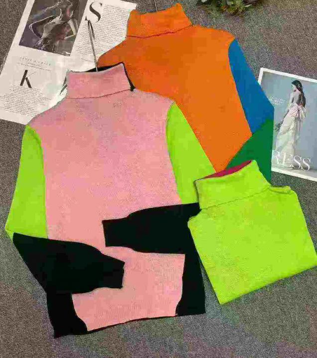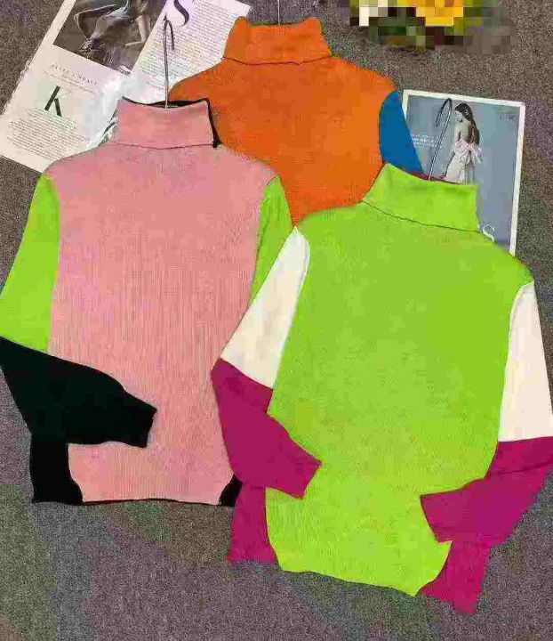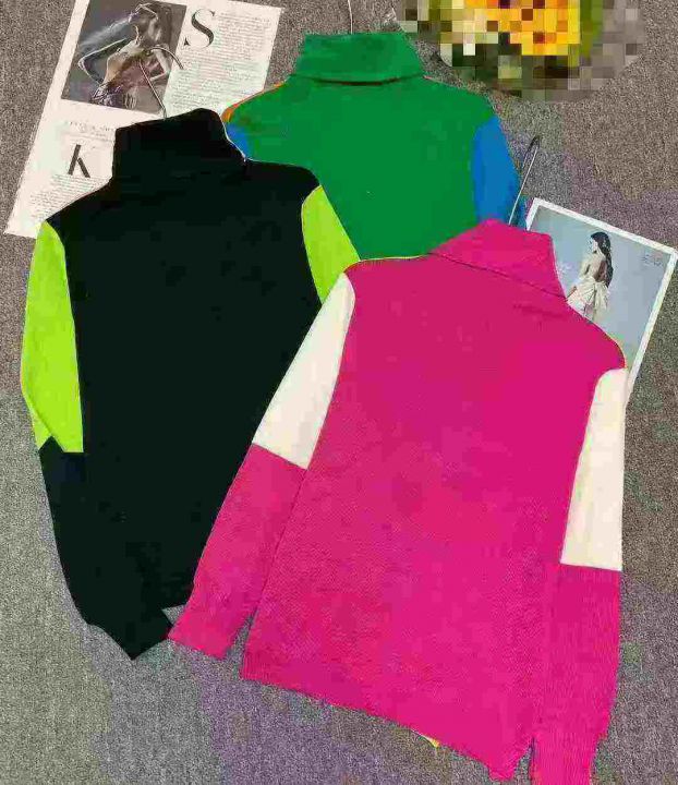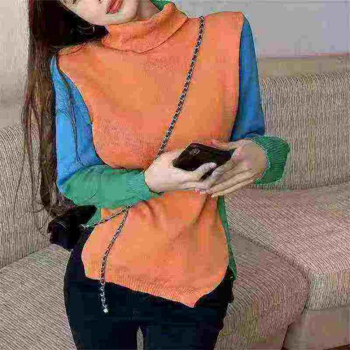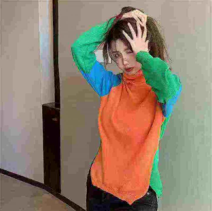 1500件左右秋冬新款半高领宽松拼色显瘦长袖内搭时尚针...