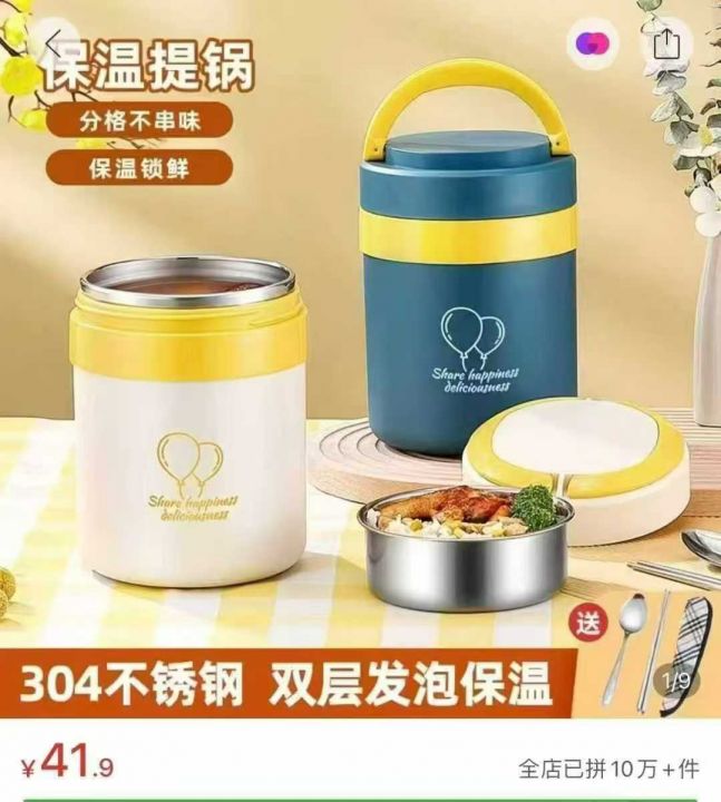 304不锈钢双层保温饭盒上班族便携大容量超长保温饭桶盒学生提锅,2.0升的,处理1000个