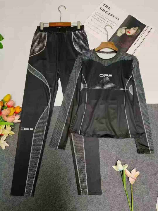 欧美时尚女装印花运动套装两件套,整款多色,数量362套,码数S-2XL,品质好,有独立包装。