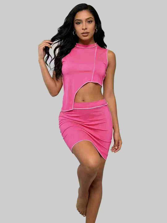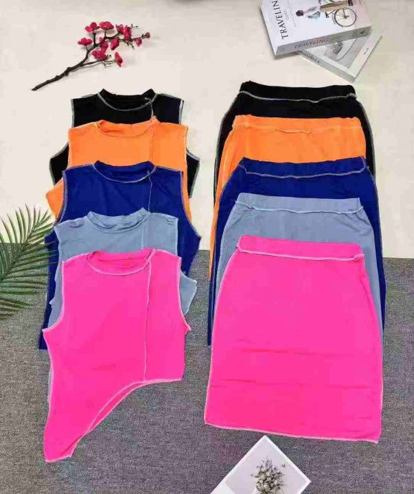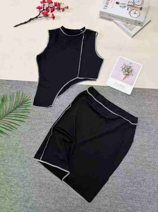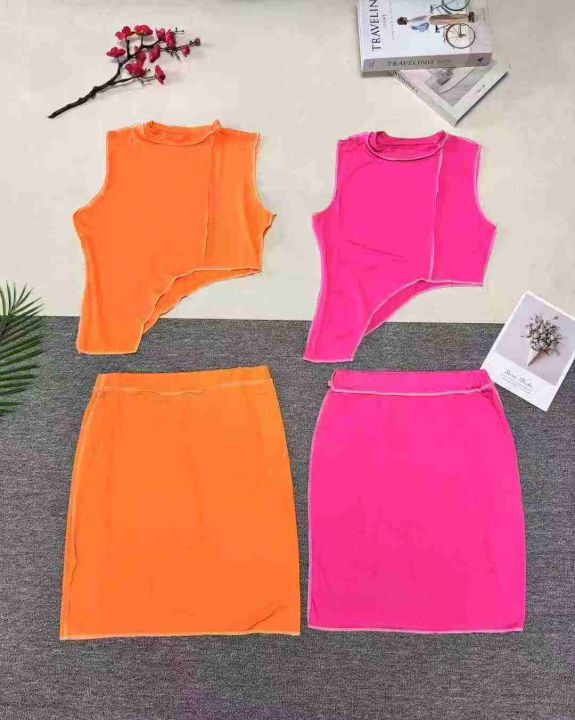 欧美洋气不规则线条无袖上衣+线条半身裙两件套,整款多色,数量:253套,码数:S-2XL,品质好,有独立包装。