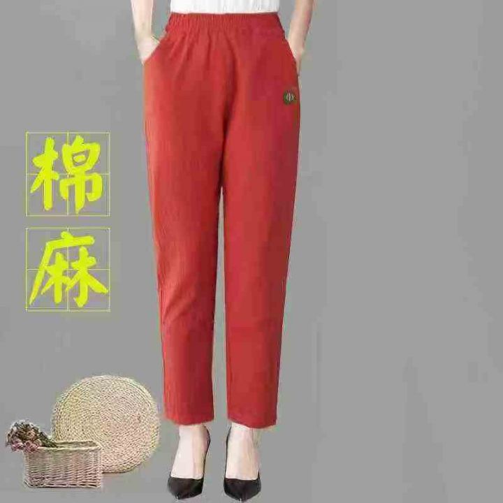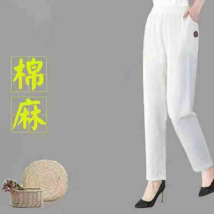 棉麻裤女夏季薄裤子女宽松中年妈妈显瘦女士休闲裤