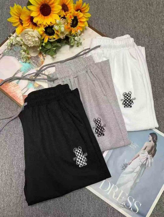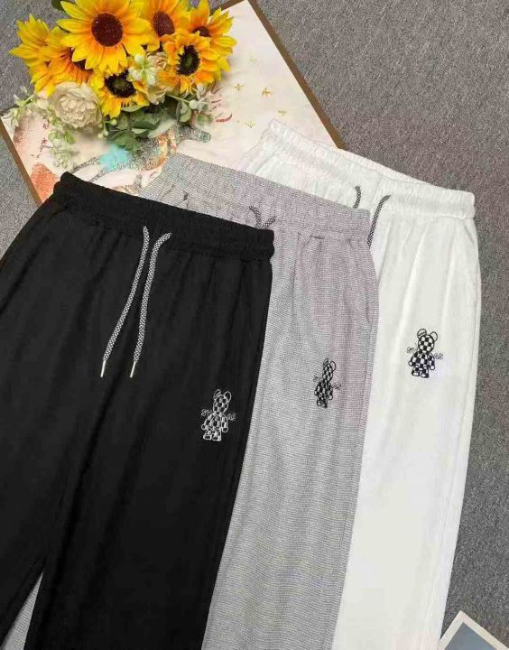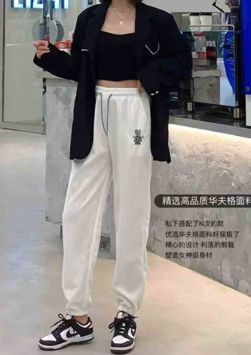 春秋新款网红复古刺绣华夫格松紧腰束脚休闲裤, 独立...