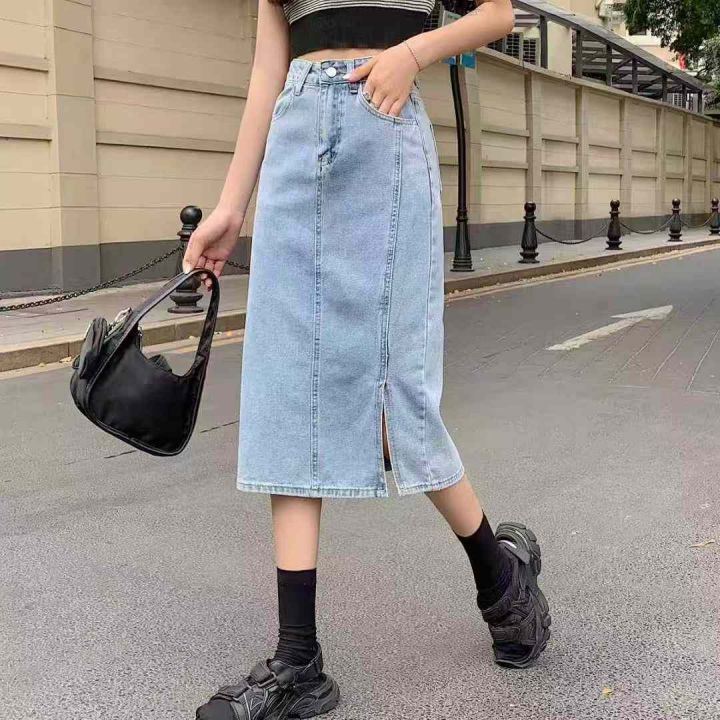春秋新款洗水棉网红开叉牛仔半身长裙,独立包装带吊牌...