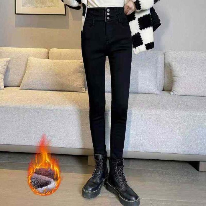 冬季新款洗水棉网红多扣黑色高弹力加绒加厚牛仔铅笔裤,独立包装带吊牌,码数25-32码,410件左右,全清9.9元超低价秒杀!分货加一!