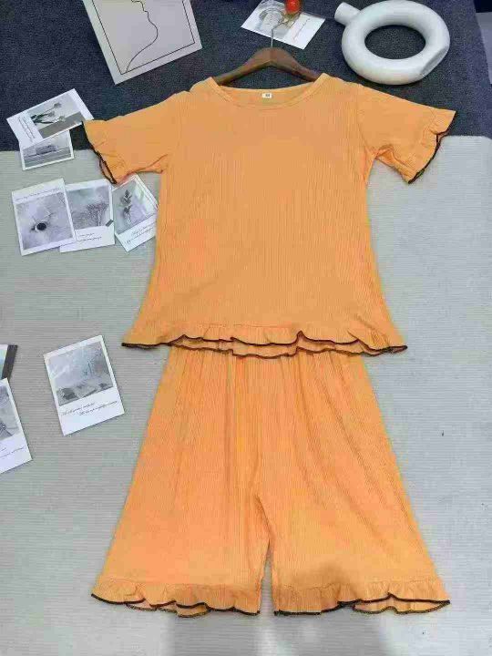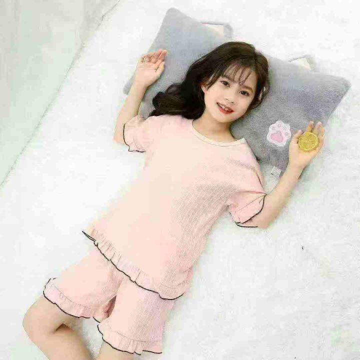 夏季纯棉薄款短袖女童睡衣宝宝空调服中大童女孩卡通家居服套装,数量406套,独立包装,码数10-18(相当于110-170),全清7.9元