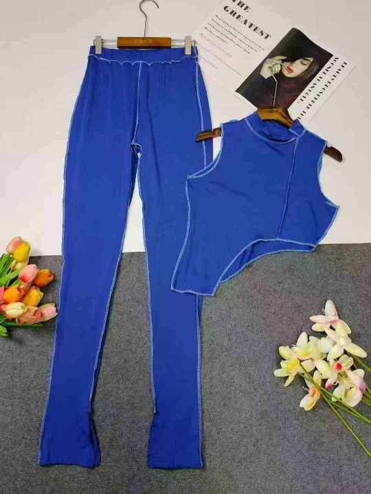 欧美时尚爆款洋气不规则线条无袖套装,整款多色,数量:733套,码数:S-2XL,品质好,有独立包装。。 货号:24862