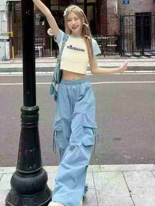 美式工装裤女春秋季新款高腰宽松显瘦百搭阔腿休闲裤,...