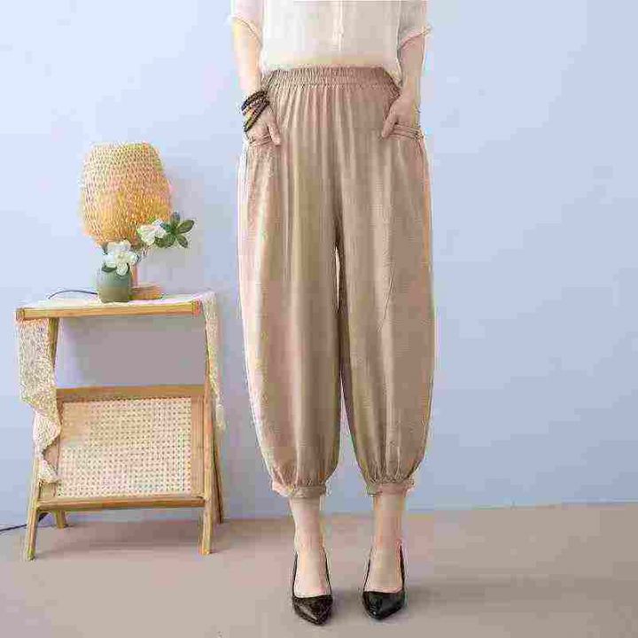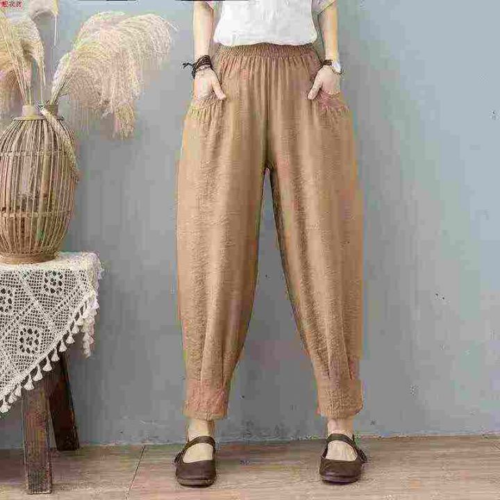 纯色中年妈妈裤棉麻薄款宽松高腰中老年女阔腿裤休闲裤子,数量431件,码数m-5xl,独立包装,全清6.9元。 货号:24862