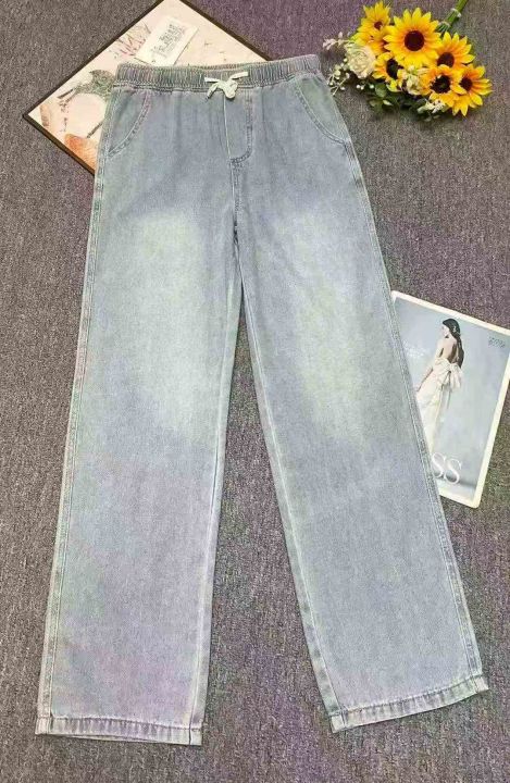 春秋新款松紧腰男女同款直筒阔腿牛仔裤,独立包装带腰卡,码数S--XL码,140件左右,全清11.8元超低价秒杀!