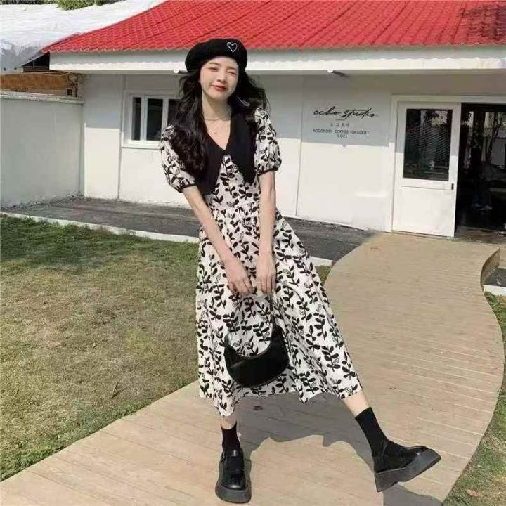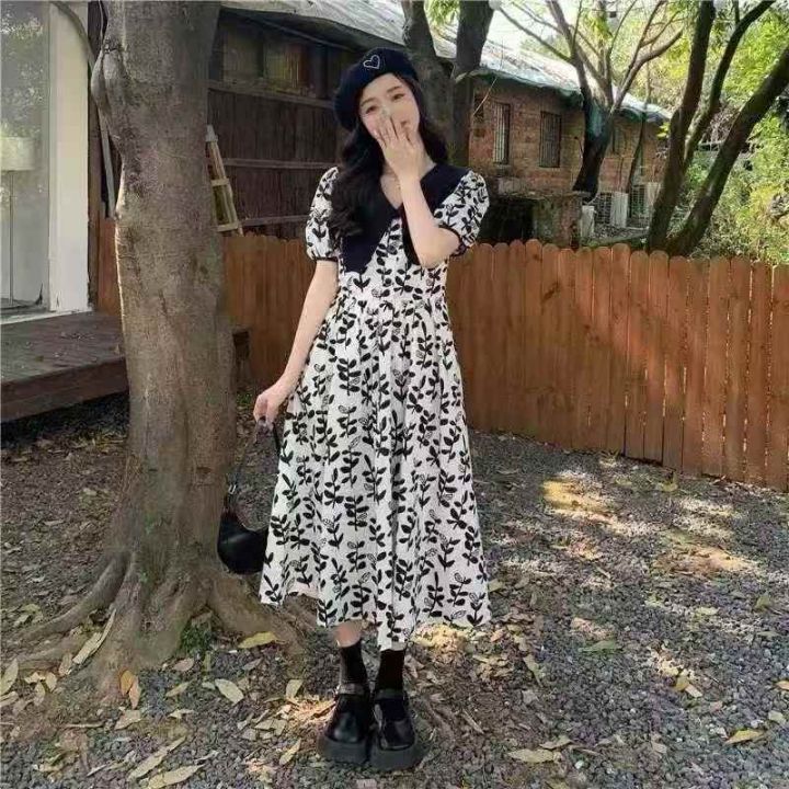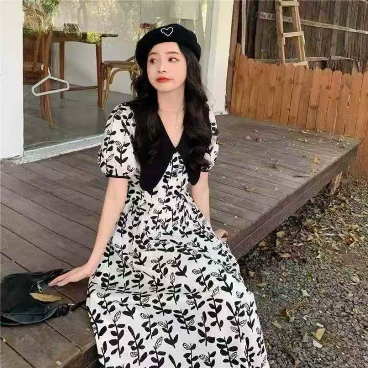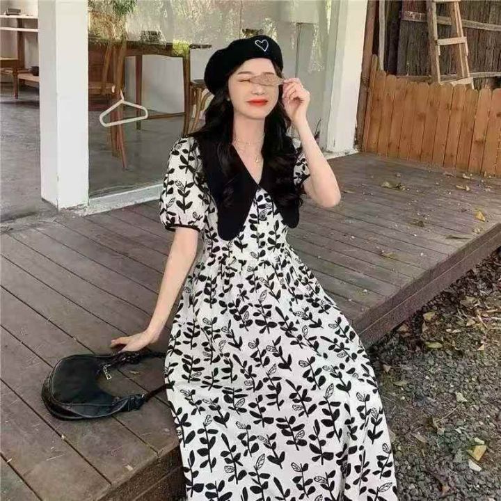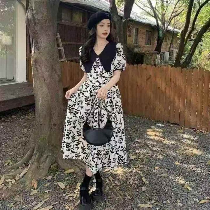 高级感黑白碎花连衣裙2025新款女夏季茶歇法式复古气质洋气长裙子 数量123条,码数m-L码 ,独立包装,货号1213#18
