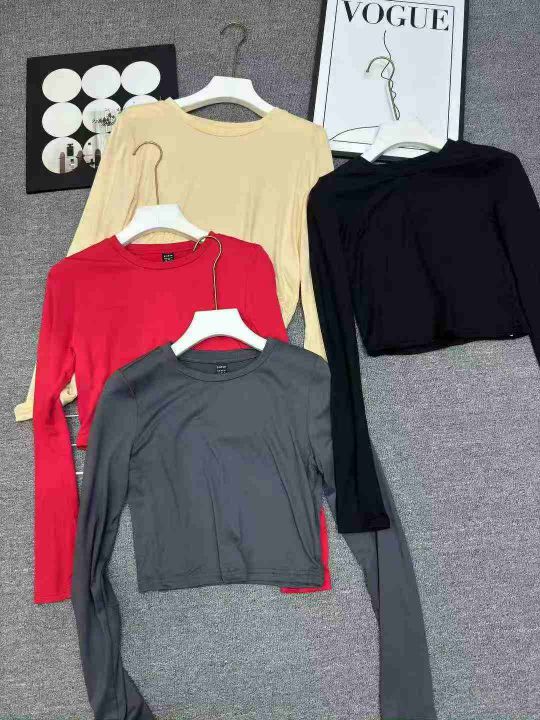 1500件,欧美风性感紧身内搭长袖打底衫纯色短款T恤女...