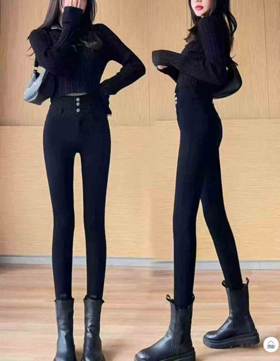 冬季新款洗水棉网红多扣黑色高弹力加绒加厚牛仔铅笔裤,独立包装带吊牌,码数25-32码,410件左右,全清9.9元超低价秒杀!分货加一!