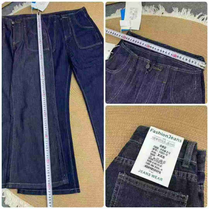 复古蓝微喇牛仔裤288件9.5,春秋高腰显瘦,裤头包边,...