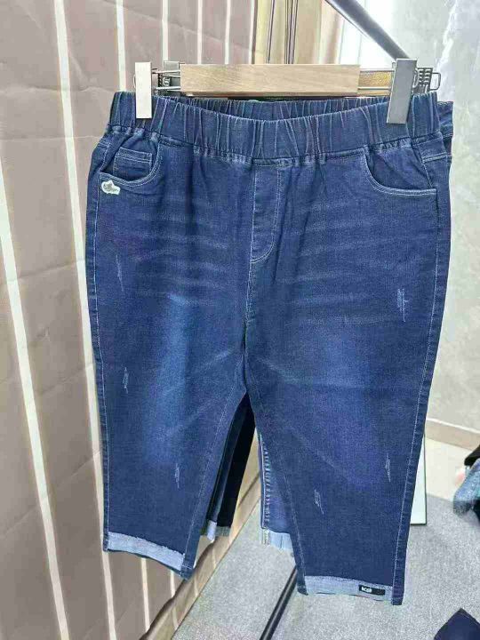 全清7.9。夏季薄款松紧腰七分裤修身显瘦牛仔裤女2025新款高腰弹力7分中裤,全部独立包装,码数29到36,共80条左右,不分货。 货号:24862