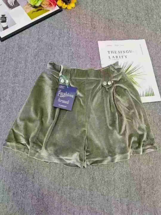 3.8清天猫仓回收220条洋气高级感青苹果金丝绒A字短裤...