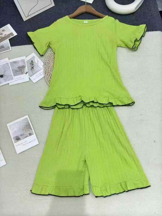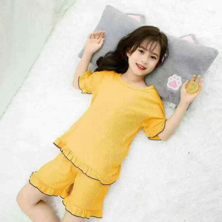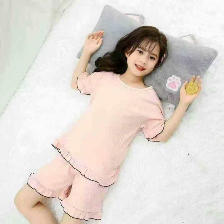 夏季纯棉薄款短袖女童睡衣宝宝空调服中大童女孩卡通家居服套装,数量406套,独立包装,码数10-18(相当于110-170),全清7.9元