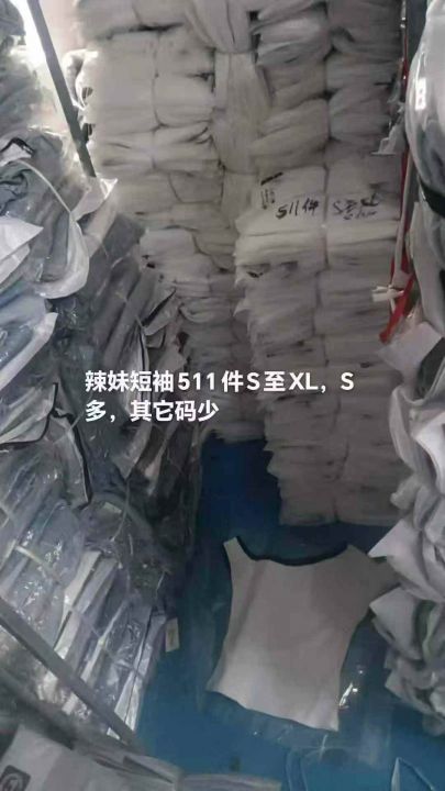 12000件左右牛奶丝双面磨毛靓妹短款夏季短袖小衫,图案多样,独立拉链包装...