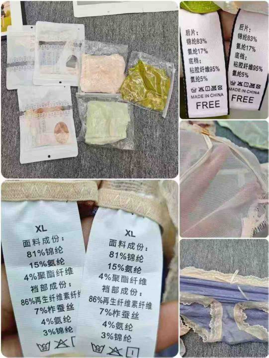 天猫仓回收1438条法式轻奢性感蕾丝纯欲镂空内裤,码数XL、FREE相当于均码。高级锦纶氨纶面料,手感舒适,有弹性,90%独立包装,少少量10件一包装。分货➕0.5