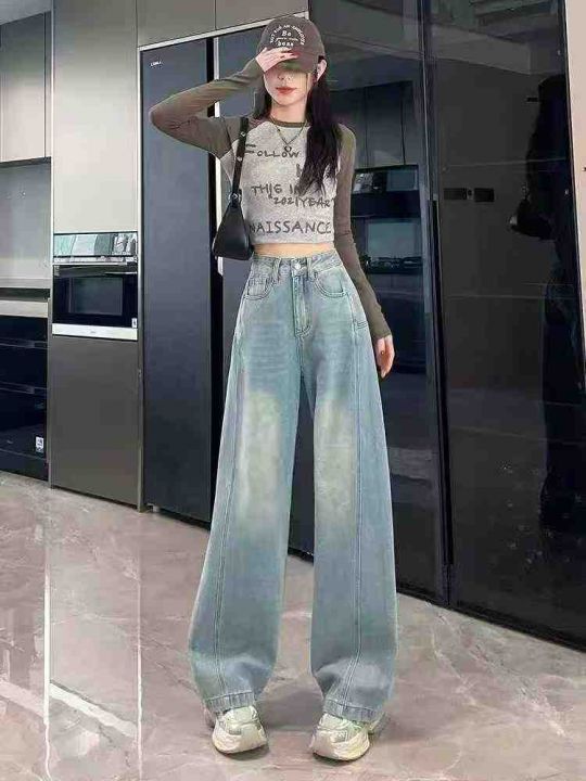 春秋新款洗水棉网红大阔腿牛仔裤,独立包装带吊牌,码...