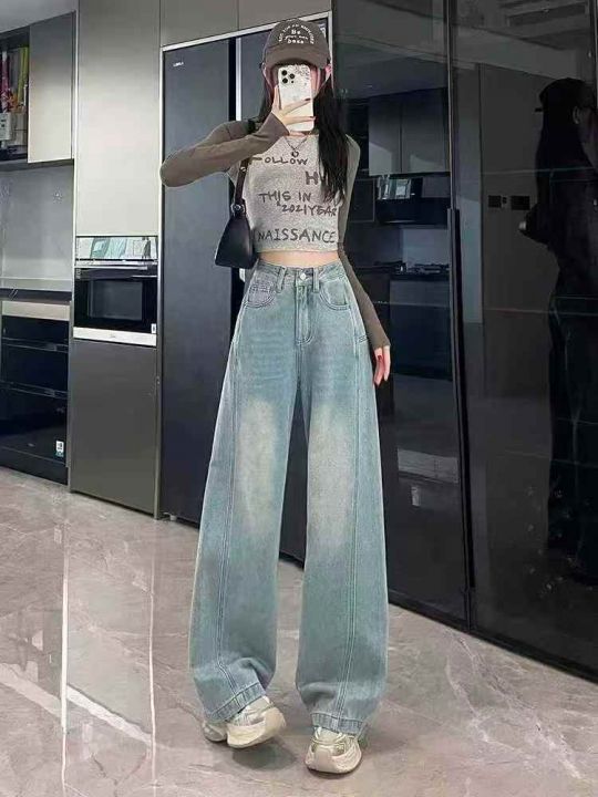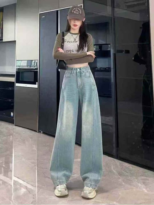 春秋新款洗水棉网红大阔腿牛仔裤,独立包装带吊牌,码...