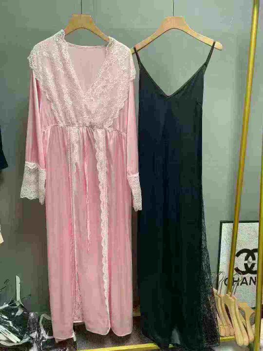 外贸长款仿真丝睡袍100件左右,粉色就几件,黑色为主...