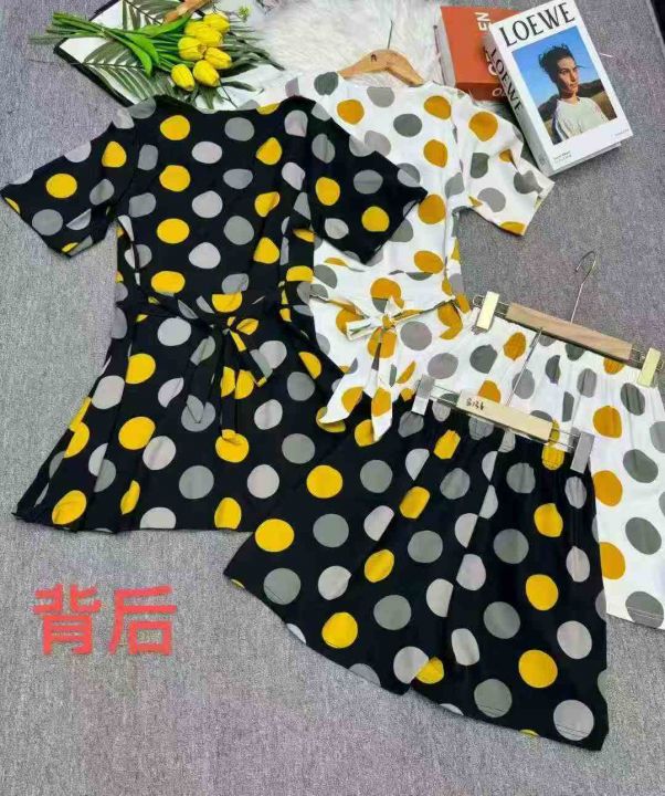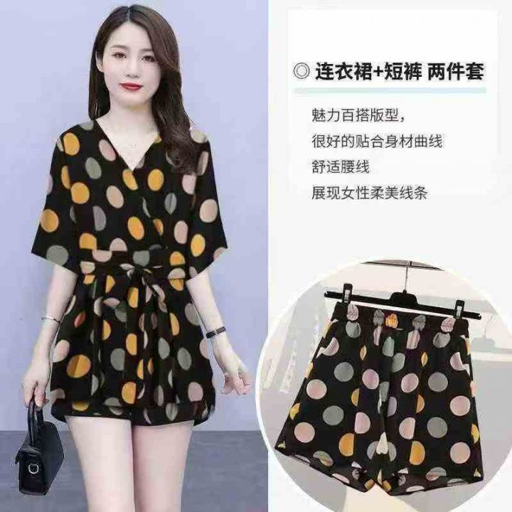 夏季时尚雪纺收腰上衣短裤减龄两件套,独立包装,码数M-3XL,数量215套,大货黑色为主,货号1213#19