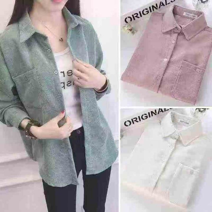 韩版宽松灯芯绒衬衫女2025新款长袖百搭口袋外套潮,独立包装,整款3色(绿色多)S-2xl码,2500件左右,7.9元清,分货➕1