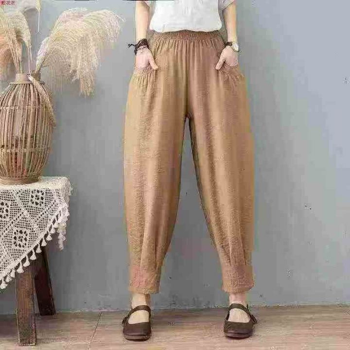 纯色中年妈妈裤棉麻薄款宽松高腰中老年女阔腿裤休闲裤子,数量431件,码数m-5xl,独立包装,全清6.9元