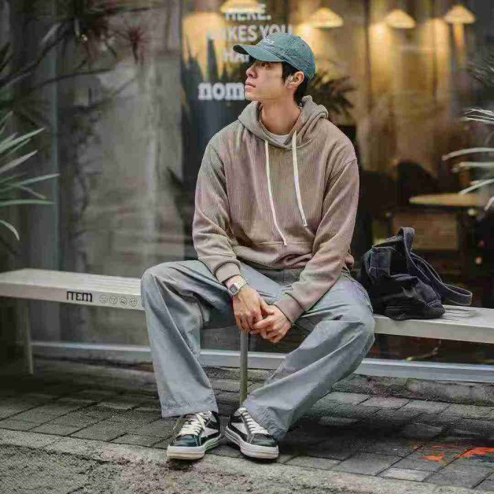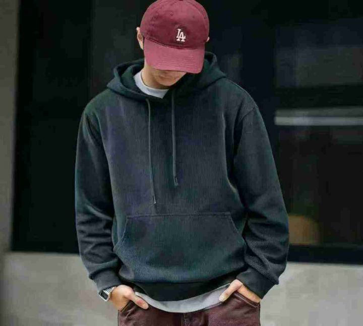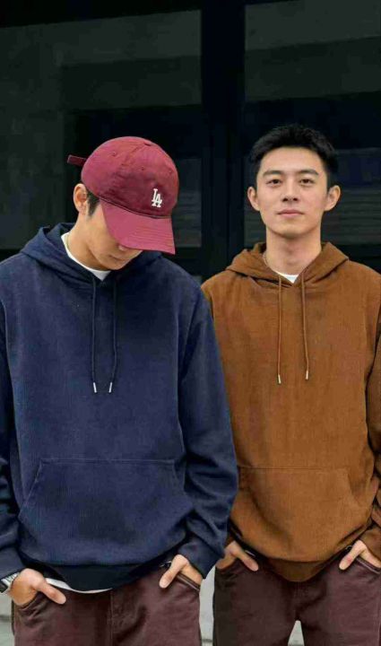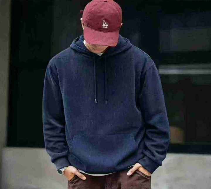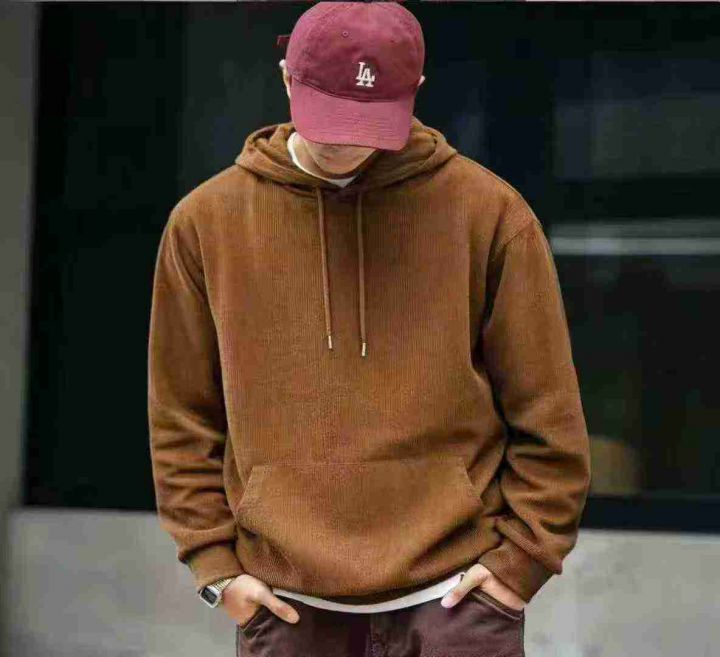 春秋新款灯芯绒净版宽松慵懒风连帽卫衣,独立包装,码...