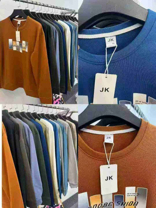 JK男装圆领卫衣☕️6500件全清12.8元 ,分货13.8元,码数XL到3XL,统一吊牌独立包装,不加绒毛圈棉,圆领卫衣男春秋款潮牌休闲宽松圆领长袖T恤潮流上衣