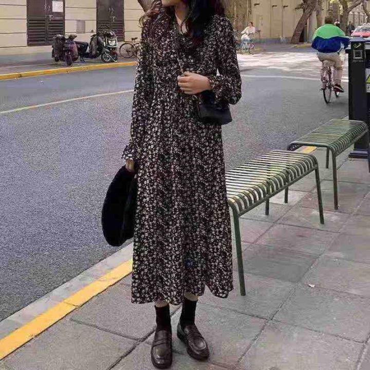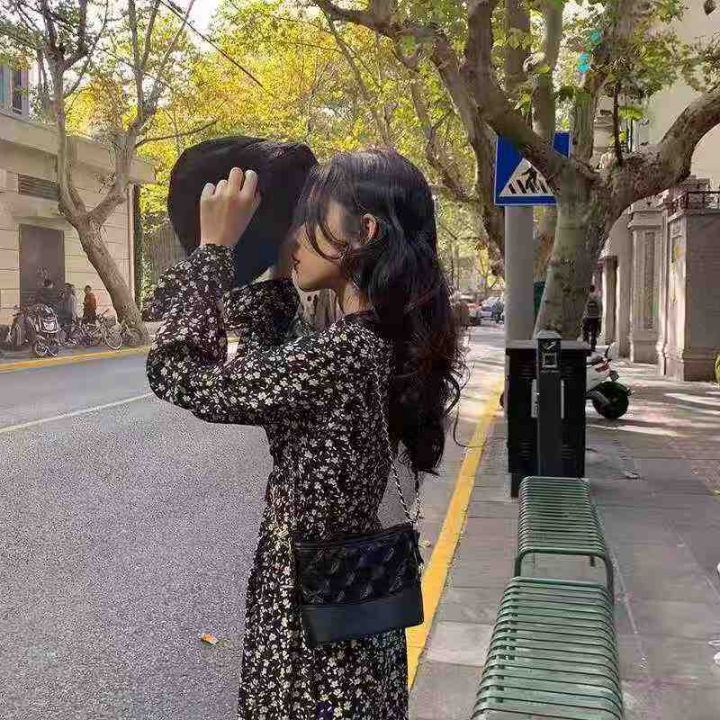 ☕️法式雪纺碎花长袖连衣裙女秋冬新款中长款收腰法式...