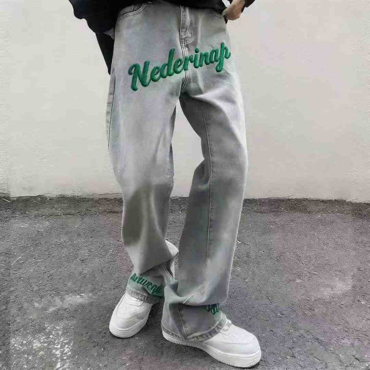 品牌原单宽松百搭男女同款刺绣网红设计款直筒长裤,独...