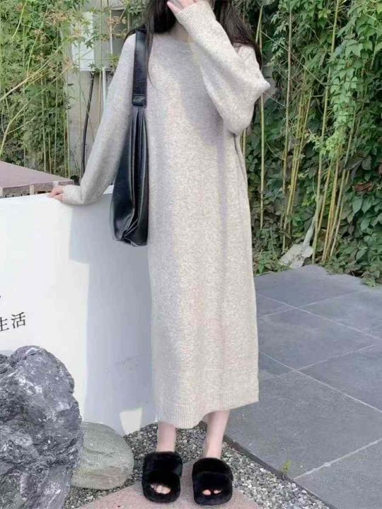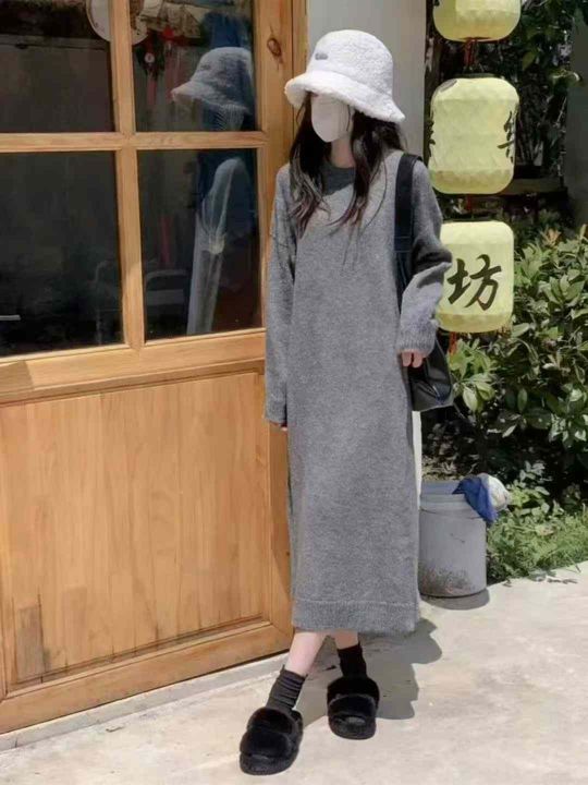 秋冬新款法式复古宽松简约中长款毛衣连衣裙,独立包装...
