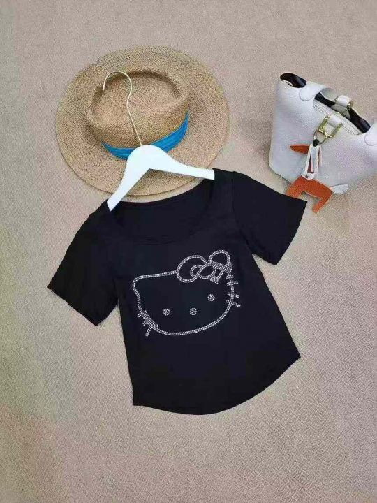 [月亮]:猫咪烫钻洋气短款气质辣妹短袖T恤