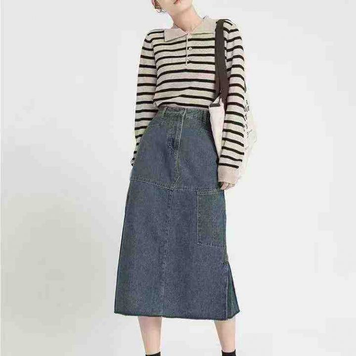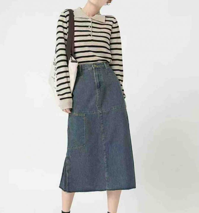 春秋新款大码女装洗水棉网红复古蓝牛仔半身长裙,独立...