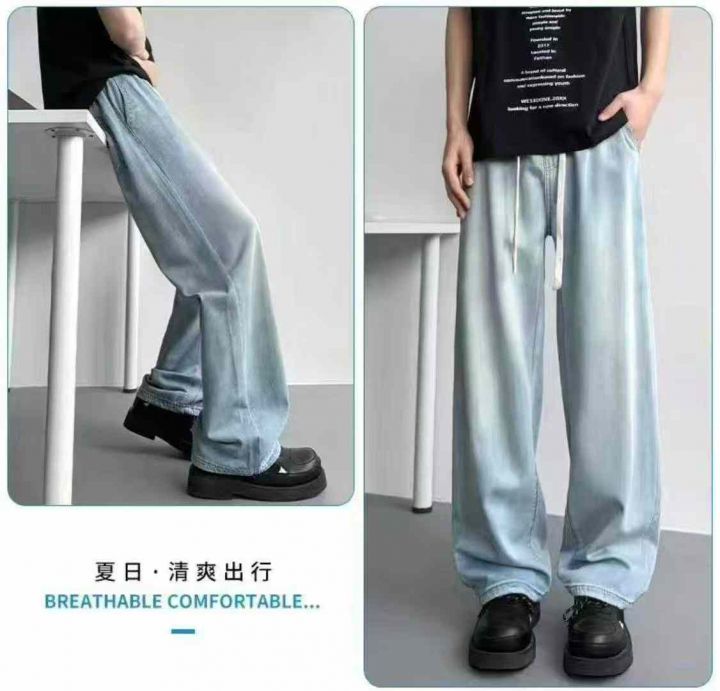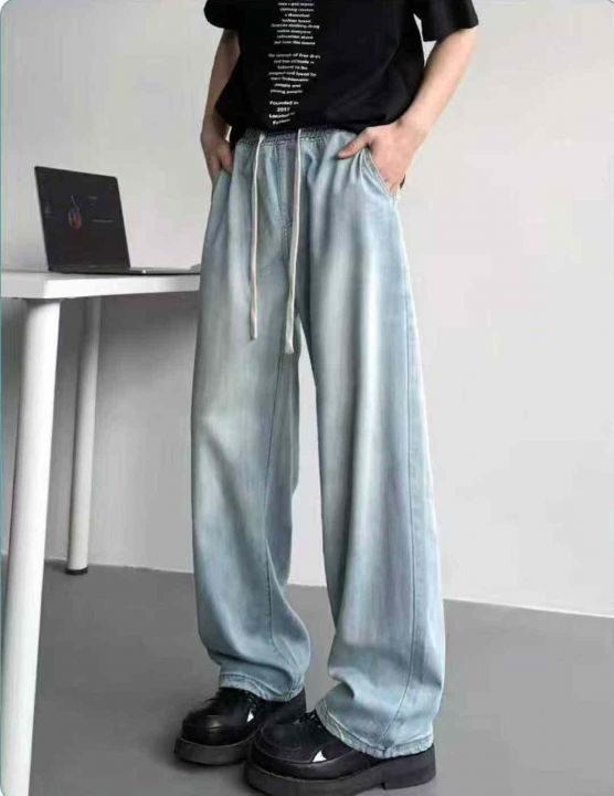 春秋新款松紧腰男女同款直筒阔腿牛仔裤,独立包装带腰...