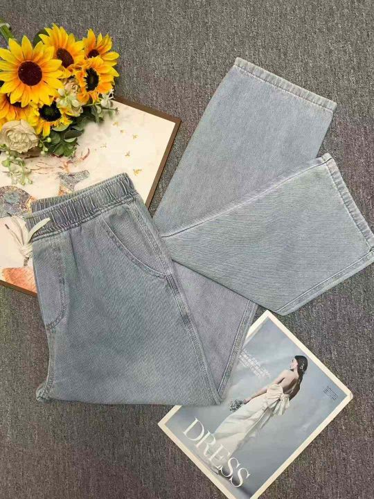 春秋新款松紧腰男女同款直筒阔腿牛仔裤,独立包装带腰卡,码数S--XL码,140件左右,全清11.8元超低价秒杀!