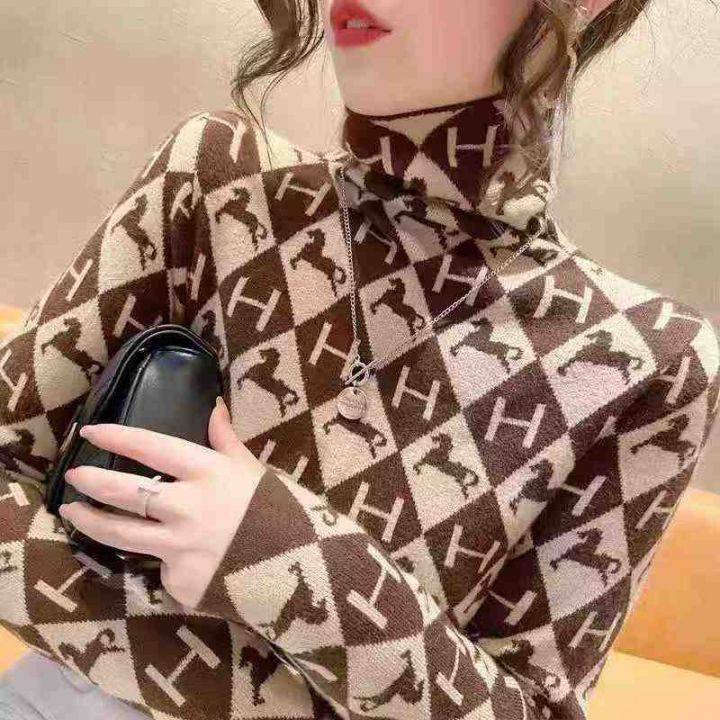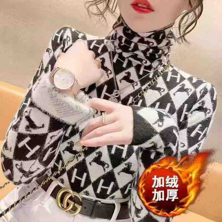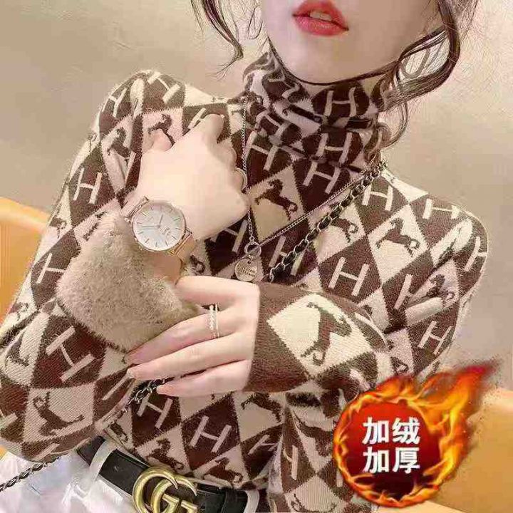 秋冬新款高品质水貂一体绒高领保暖时尚洋气套头毛衣,...