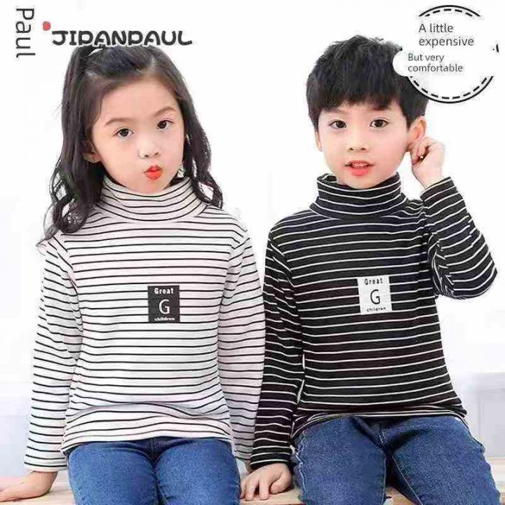 码数120-160,独立包装,高弹力内里抓绒保暖打底衫,儿童内搭打底衫秋冬加绒保暖上衣中高领条纹长袖外穿T恤