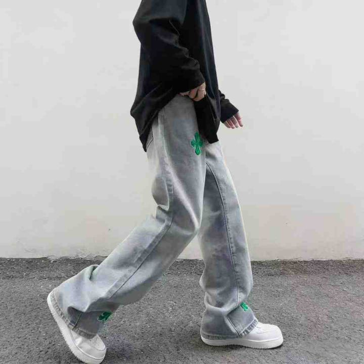品牌原单宽松百搭男女同款刺绣网红设计款直筒长裤,独...