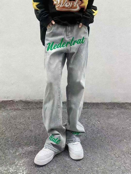 品牌原单宽松百搭男女同款刺绣网红设计款直筒长裤,独...