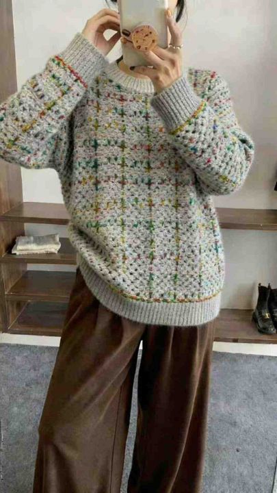 秋冬新款设计感彩线软糯宽松慵懒风加厚甜美显瘦减龄圆...