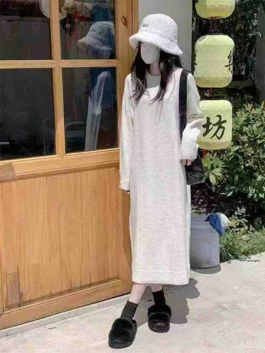秋冬新款法式复古宽松简约中长款毛衣连衣裙,独立包装...