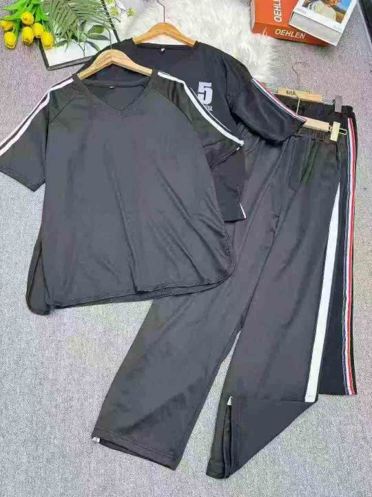夏天穿搭一整套T恤新款显瘦运动休闲长裤套装,独立包装,两个整款单色,码数2-5 ,数量268 ,货号1210#12。 货号:24862