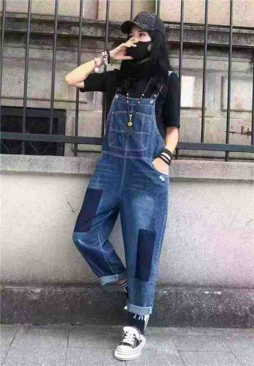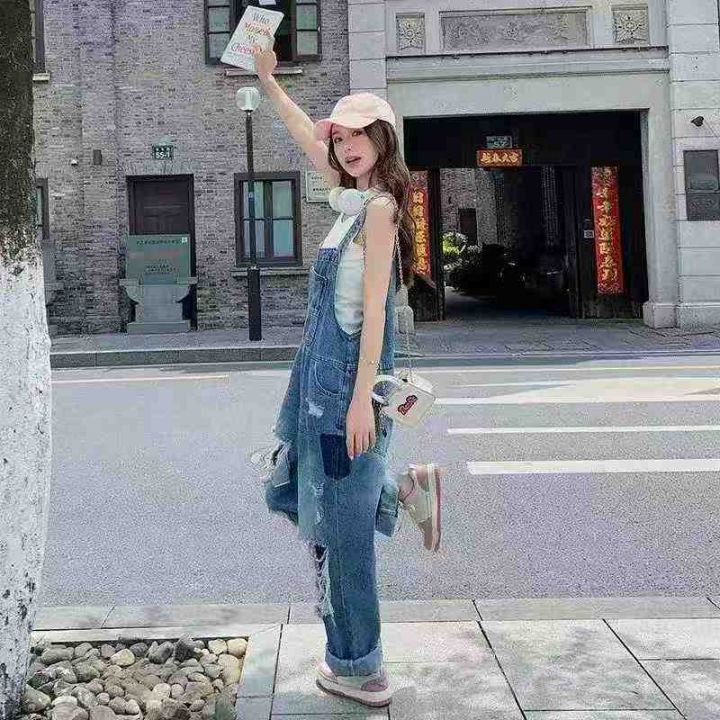 春秋新款网红复古宽松百搭设计款背带牛仔裤,独立包装...