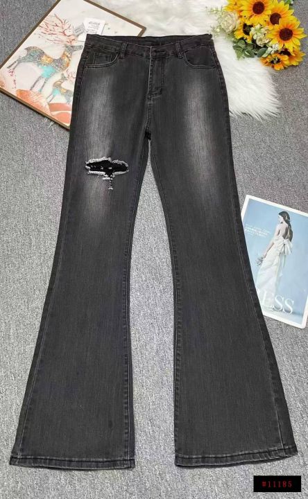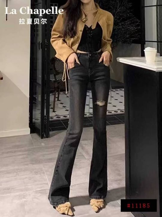 春秋新款高弹力网红复古微喇叭牛仔裤,独立包装带吊牌...