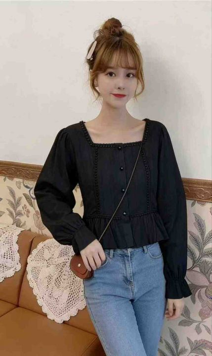 春秋新款韩版法式方领简约设计感单排扣泡泡袖长袖棉麻衬衣,独立包装,均码,150件,全清4.8元超低价秒杀!